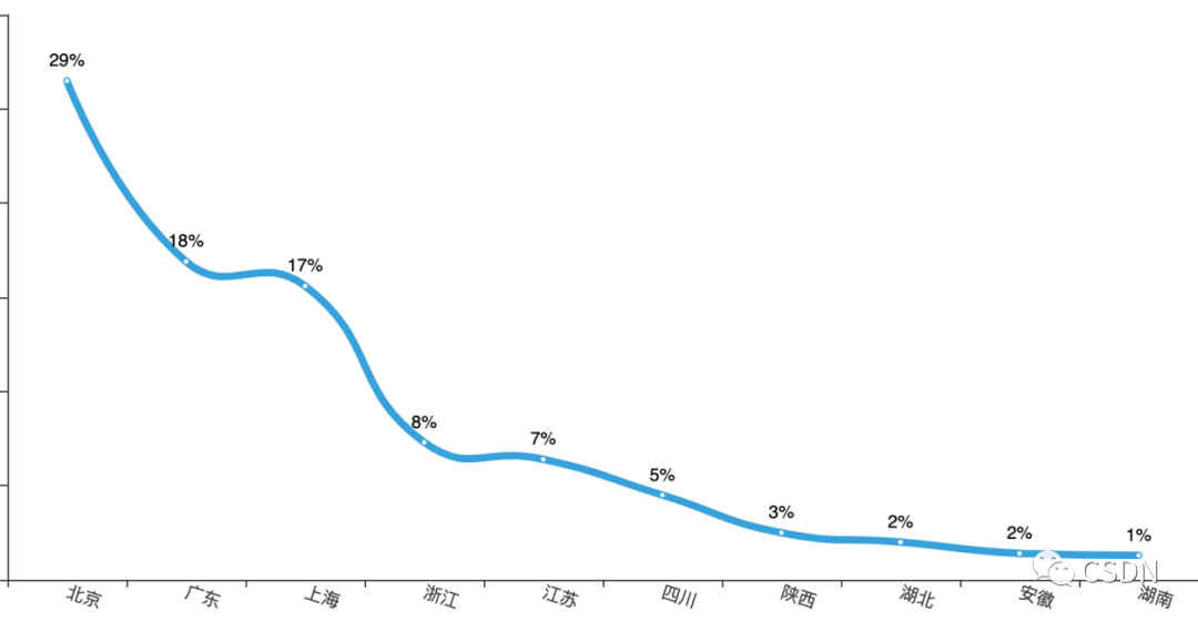 或许是北上广深及其他新一线城市的整体薪资水平远高于其他地区,也或许是其中汇聚了产学研界较好的资源与机会等,近 70% 的国内开发者还是喜欢聚集在一线/新一线城市。