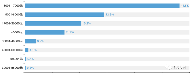 “高薪”,一直都是程序员群体的标签之一,近几年其薪资水平更是在逐渐拔高。去年,44.5% 的开发者月薪 8001-17000 元,如今这一数据已增至 49.2%,同时薪资在 17001-30000 元的程序员比例也由 16.2% 增至 20.5%。