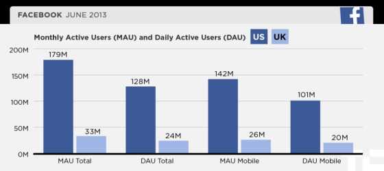 Facebook还首次公布了美国、英国的每日活跃用户数据:美国Facebook日活跃用户数超过1.28亿,约为美国总人口的三分之一;英国日活跃用户数则约为2400万。
