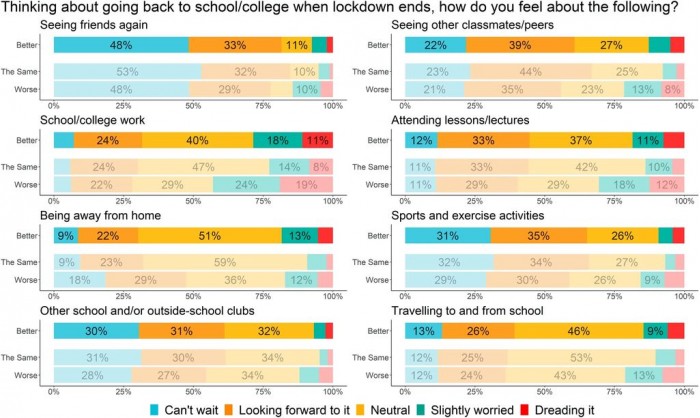 虽然以前的研究报告说年轻人担心封锁对友谊的影响,但在这项新的研究中,有近一半报告说心理健康得到了改善,感觉不那么被遗弃和孤独,与朋友和家人有更好的关系。在某种程度上,这可能是因为获得数字形式的社会互动可以缓解面对面接触减少所带来的负面影响。由于许多父母和照顾者都在家里,家庭关系也有可能得到改善。