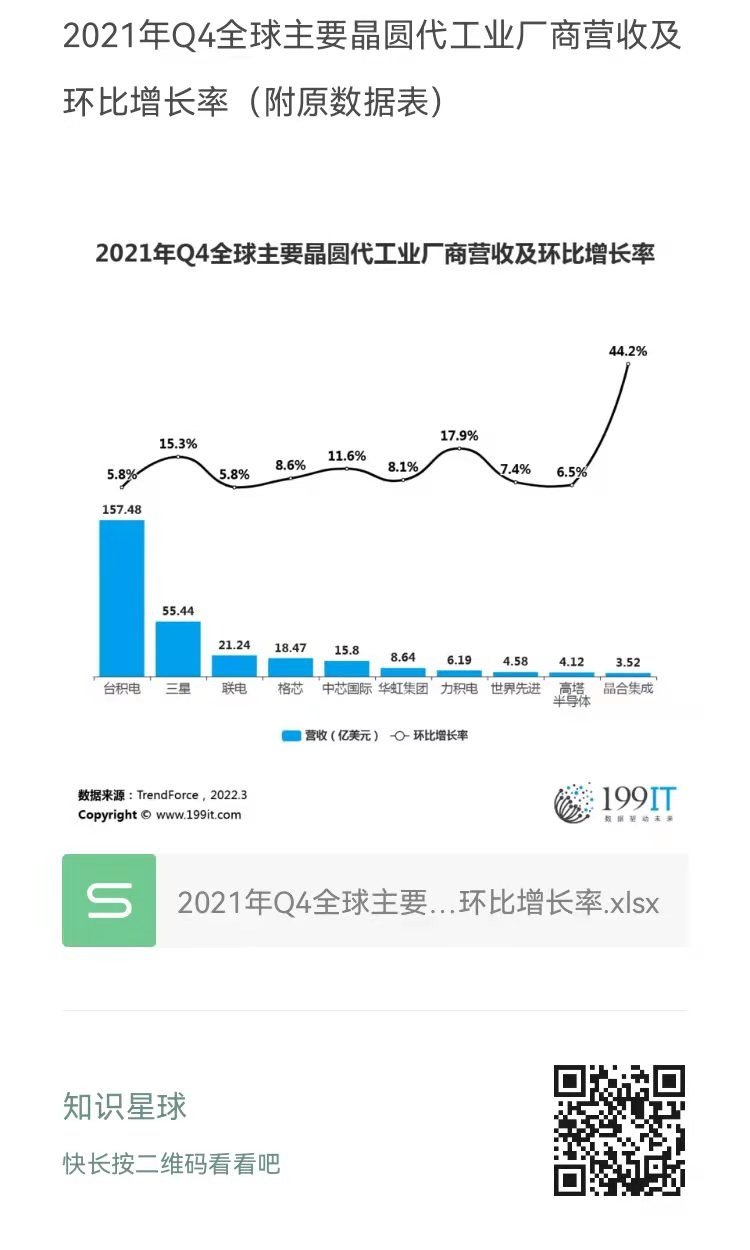- 2021年Q4全球主要晶圆代工业厂商营收市场份额(附原数据表)