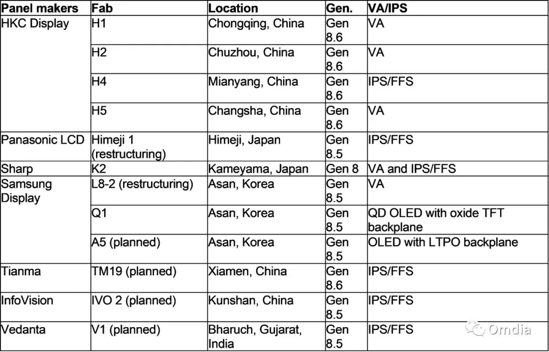 由于液晶电视面板的供应目前处于相对过剩的态势,越来越多的8.5代和8.6代线产能转向生产桌上型液晶显示器。同时,像惠科的H4绵阳产线和华星光电的T9产线这样的新产线则专注于生产IPS/FFS技术面板。