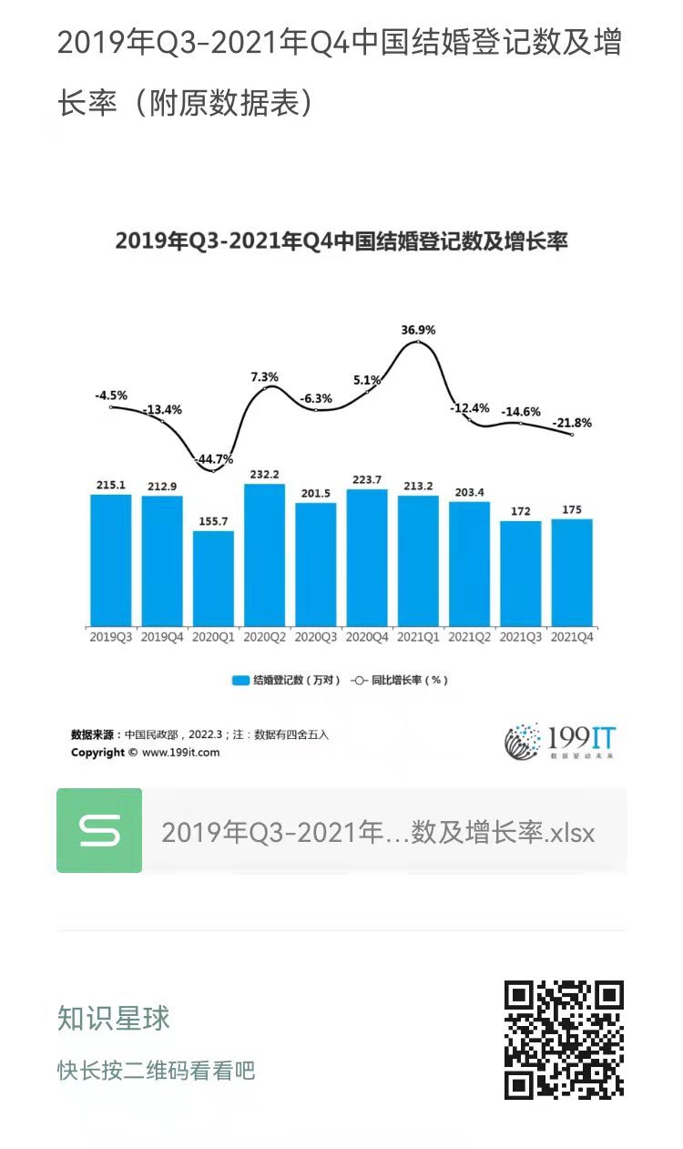 - 2021年Q1-2022年Q4中国结婚登记数及增长率(附原数据表)