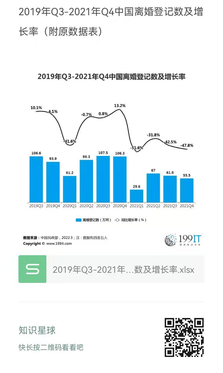 - 2021年Q1-2022年Q4中国离婚登记数及增长率(附原数据表)