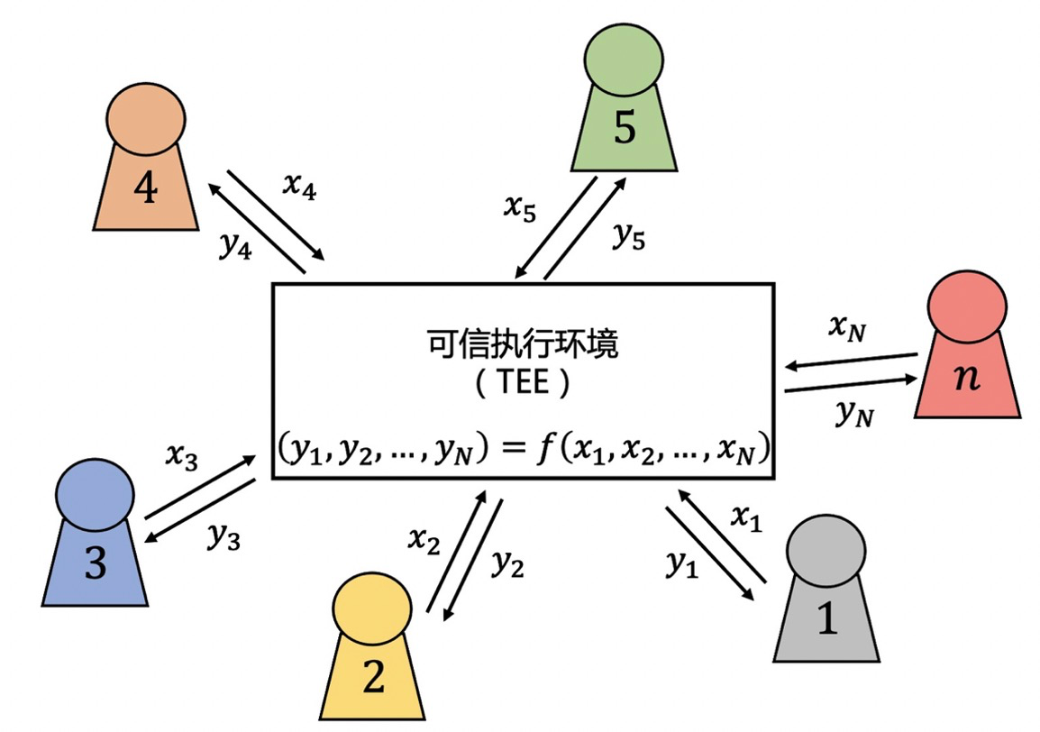- 中心化的计算模式:即可信执行环境(TEE),在这种模式下,各参与方信任中立第三方,把原始数据安全加密后上传到TEE环境,并进行后链路的统计分析、机器学习等。涉及的技术领域除了TEE,还需要辅助RSA、AES等加密技术手段。