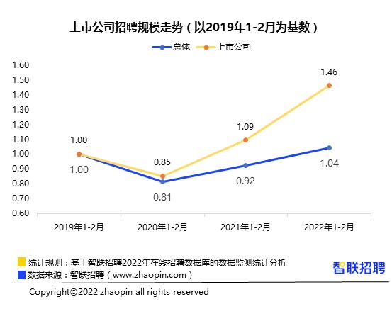 2、上市公司招聘规模疫情后快速恢复,2022 年 1-2 月比 2019 年同期增 46%