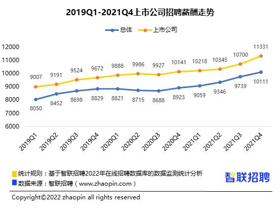 3、上市公司招聘薪资长期保持领先优势,疫情期间尤为坚挺