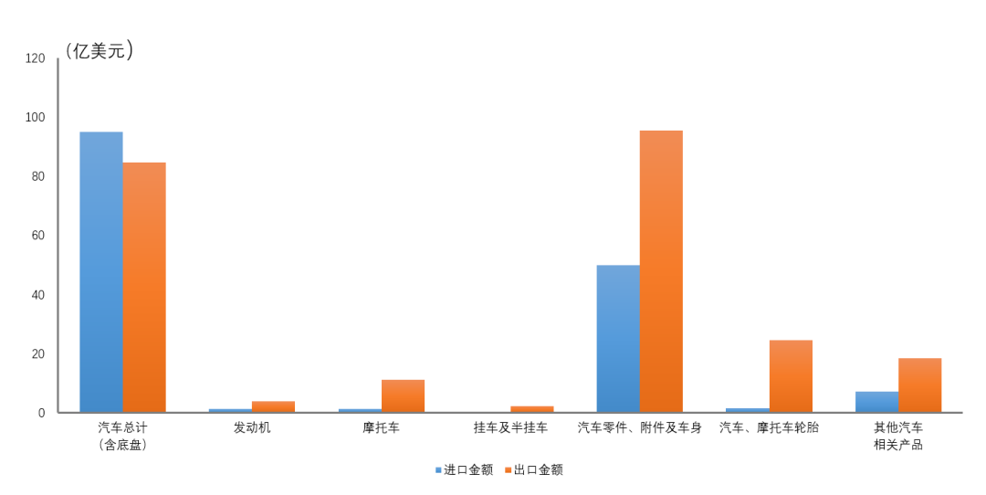中国汽车工业协会:2022年1-2月汽车商品进出口情况简析 据中国汽车工业协会整理的全国海关汽车商品进出口数据显示,2022 年 1-2 月,全国汽车商品累计进出口总额为 396.2 亿美元,同比增长 15.4%。 其中,进口金额 156.1 亿美元,同比下降 1.0%;出口金额 240.1 亿美元,同比增长 29.5%。 更多阅读:中国汽车工业协会:2022年3月前十位轿车品牌销量排名中国汽车工业协会:2023年1-2月我国汽车商品出口金额前十国情况简析中国汽车工业协会:2021年5月汽车工业运行情况简述中国汽车工业协会: 2023年4月汽车出口情况简析中国汽车工业协会: 2023年2月汽车出口情况简析中国汽车工业协会:2023年2月汽车工业产销情况简析中国汽车工业协会: 2022年8月中国品牌乘用车销售简析中国汽车工业协会:2022年商用车产销情况简析中国汽车工业协会:2022年8月汽车工业产销情况简述中国汽车工业协会:2022年1-2月我国汽车零部件出口情况简析中国汽车工业协会:2021年10月汽车生产企业出口情况简析中国汽车工业协会:2021年8月乘用车单月产销同比降幅扩大中国汽车工业协会:2021 年 6 月汽车出口刷新历史记录中国汽车工业协会:2021年12月乘用车产销情况简析中国汽车工业协会:2021年12月汽车生产企业出口情况简析