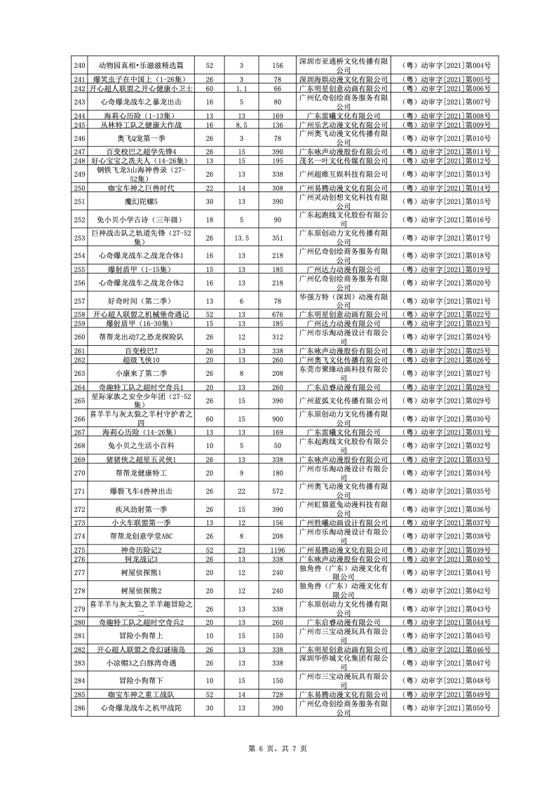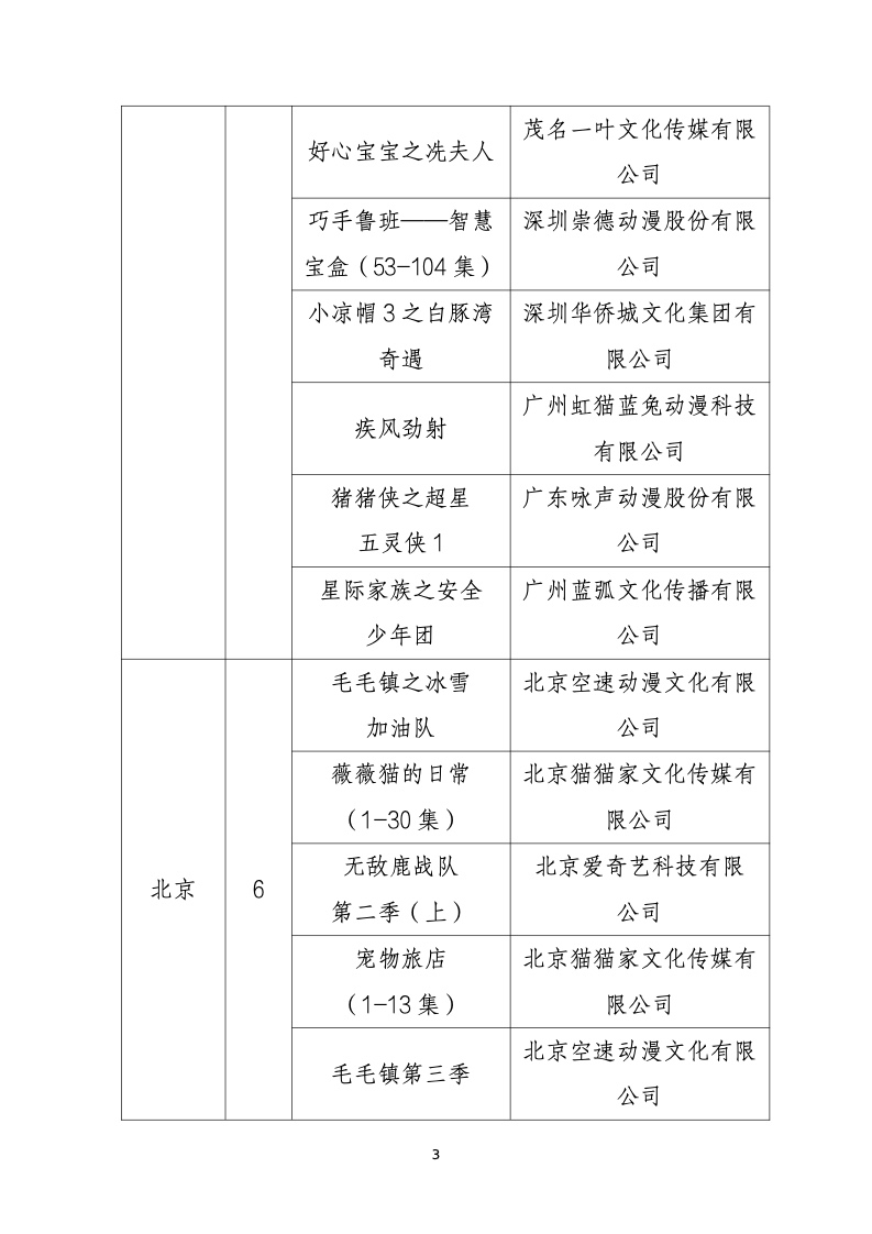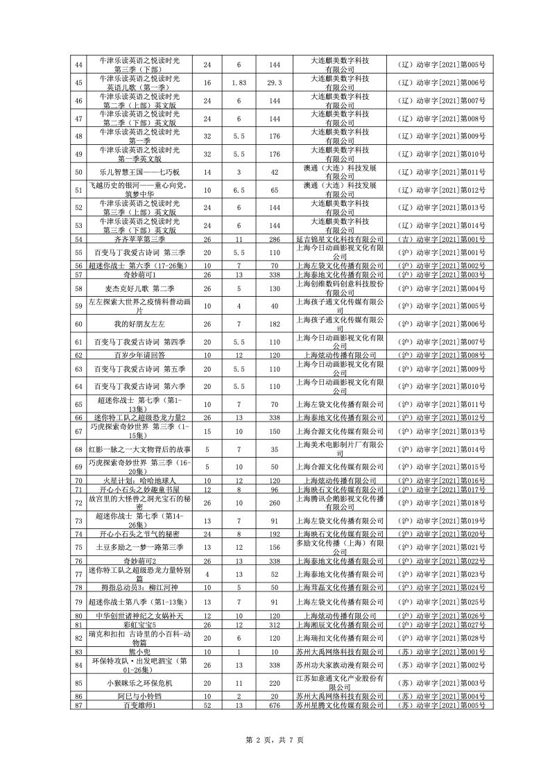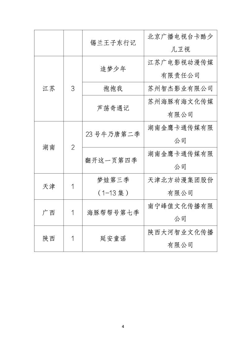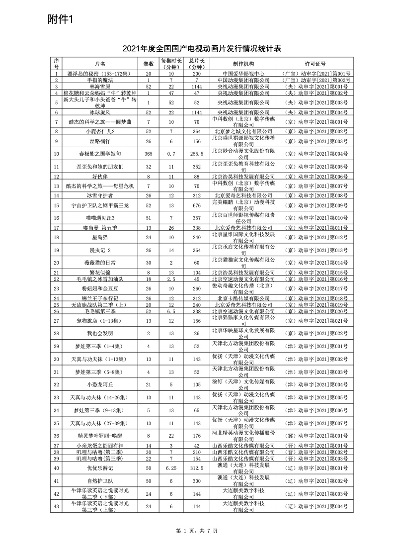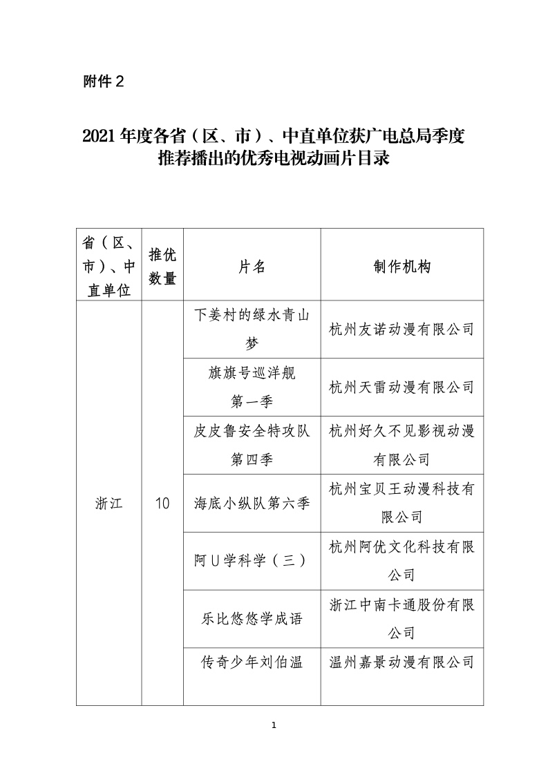 2021年度各省(区、市)、中直单位获广电总局季度推荐播出的优秀电视动画片目录