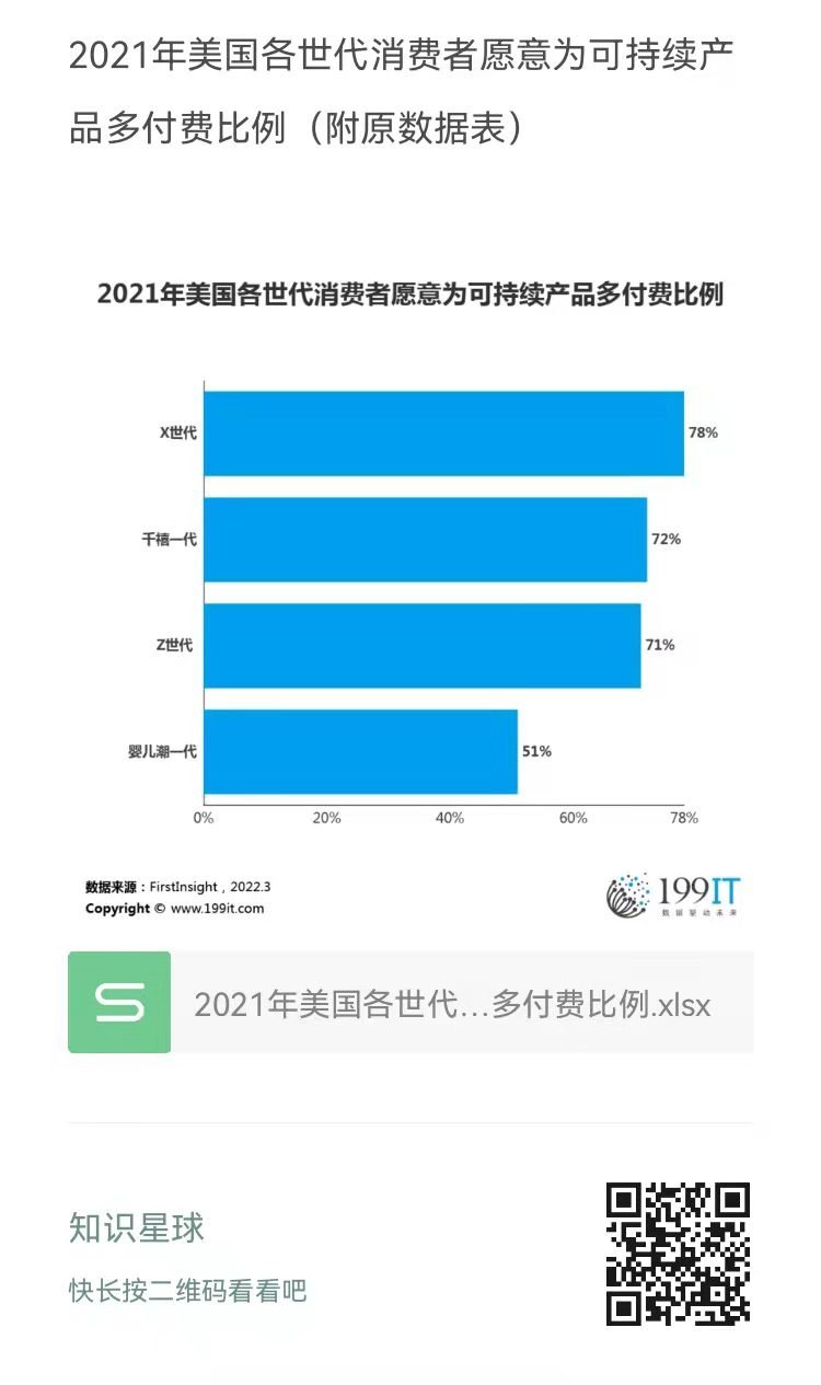 2021年美国各世代消费者愿意为可持续产品多付费比例(附原数据表) ​​​​