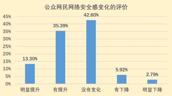 (1) 网民的网络安全感满意度提升,网络安全治理取得良好的效果;
