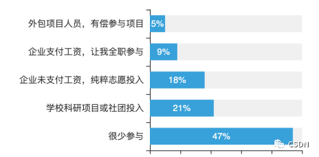 今年的开源开发者大调查显示,47% 的开发者很少参与开源项目,志愿投入参与开源的仅 18%。开源没有一腔热血是不行的,但仅靠一腔热血也会造成动力不足的问题。