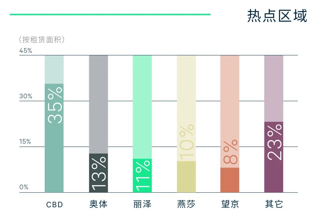 部分销量好的奢侈品牌积极进行店铺翻新、扩张或位置调整。个别核心商圈项目继续引入奢侈品牌和高端餐饮,进一步完善项目高端定位。以seesaw、MANNER、乐乐茶为首的连锁咖啡茶饮品牌,以及剧本杀、脱口秀等体验类或者沉浸式业态在区域型购物中心活跃布局,带动购物中心人流以及消费活力。同时,为去化难以直接填满的大面积铺位,越来越多业主将其切割租赁给以小满手工粉、遇见小面、牛汤哥为代表的连锁小面积快餐品牌,丰富餐饮选择。美容美甲、KTV等生活类业态在非集中区域的社区型购物中心亦有表现。首店方面,费大厨辣椒炒肉、东发道茶冰室、迷你椰等餐饮首店分别进驻朝阳大悦城、西单大悦城和崇文门国瑞城,李宁旗下电竞潮流运动品牌LNG在荟聚西红门购物中心开出首店。