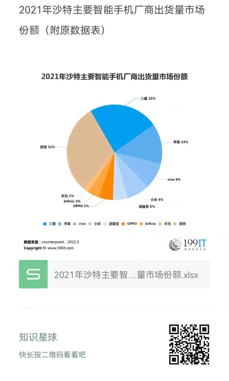 2021年沙特主要智能手机厂商出货量市场份额(附原数据表) ​​​​