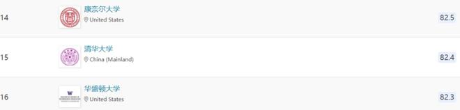 今年,清华大学的排名下滑了2位,去年排名第13,北京大学的排名下滑4位,去年排名第20。