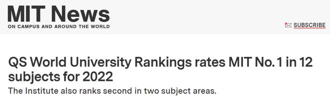 麻省理工学院在QS世界大学学科排名中又拿了个第一。