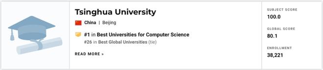 计算机排名:清华位列15