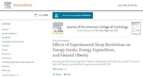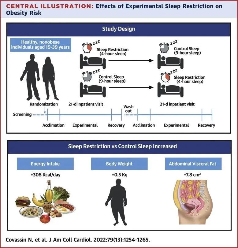 Naima Covassin,Prachi Singh,Shelly K.McCrady-Spitzer, et al. Effects of Experimental Sleep Restriction on Energy Intake, Energy Expenditure, and Visceral Obesity, Journal of the American College of Cardiology (2022). DOI: 10.1016/j.jacc.2022.01.038