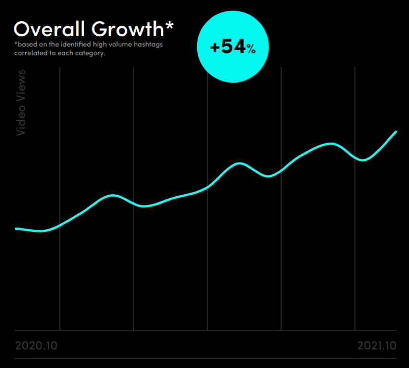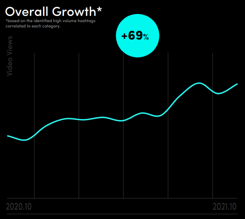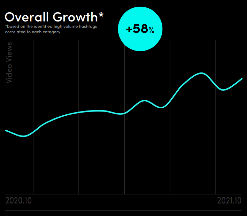 通过全程录播开箱过程、介绍最新款产品,以及分享产品的日常使用场景,吸引到大批簇拥,一些话题标签也随之大热。像是智能手机,#smartphone 的视频浏览量同比增长 74%,另外,2021 年新款 iPhone 发布后拍摄功能一时间激起热议,诸如#카메라(相机)(视频浏览量同比增长 268%)、#에어팟(airpods)(视频浏览量同比增长 66%)和#언박싱(# 开箱)(视频浏览量同比增长 220%)等标签都有显著增长。围绕电子设备的讨论度也呈爆炸式增长,像是屏幕如何防刮防摔、相机镜头如何正确护理以及无线耳机如何正确选购,都是今年科技类 UP 主以及用户在 TikTok 热议的话题。