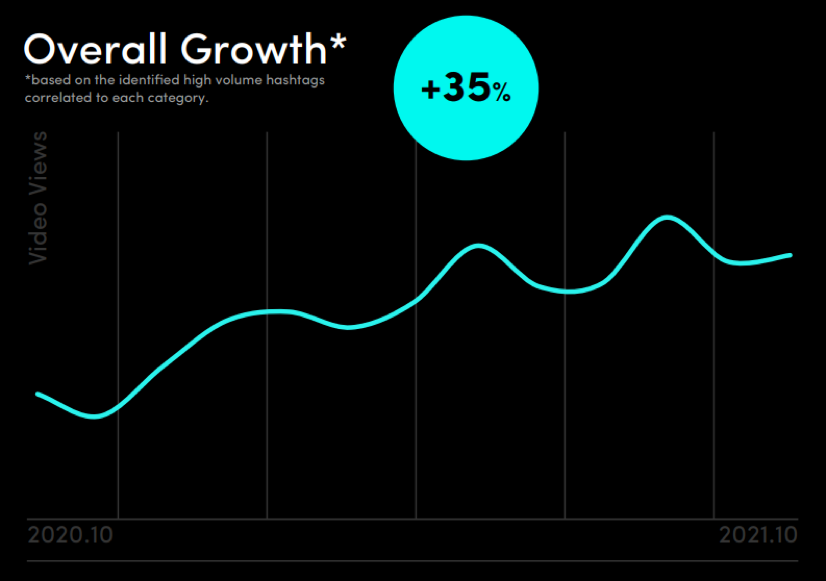 韩国本土有不少游戏公司,但今年在 TikTok 韩国用户上传的视频内容主要是围绕海外游戏。全球电子竞技联赛,如 2021 年 Valorant 冠军赛、英雄联盟欧洲锦标赛和英雄联盟韩国冠军赛,使韩国民众对外国游戏的兴趣陡增。Clashroyale(视频浏览量同比增长 827%)和 Valorant(视频浏览量同比增长 780%)等标签发展势头迅猛。以 Afreeca TV、YouTube 和 Twitch 等平台为 “大本营” 的 UP 主们不约而同地在 TikTok 找到新家。该类别内发布的大部分内容都围绕着游戏玩法,如游戏集锦和游戏创意。