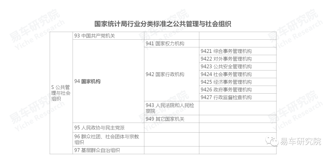 根据国家统计局的行业分类标准,公务员属于公共管理和社会组织的分类范畴,本报告聚焦国家机构的在编工作人员,包括权力机构、行政机构、人民法院等,将由国家机构在编人员组成的细分车市定义为公务员车市;
