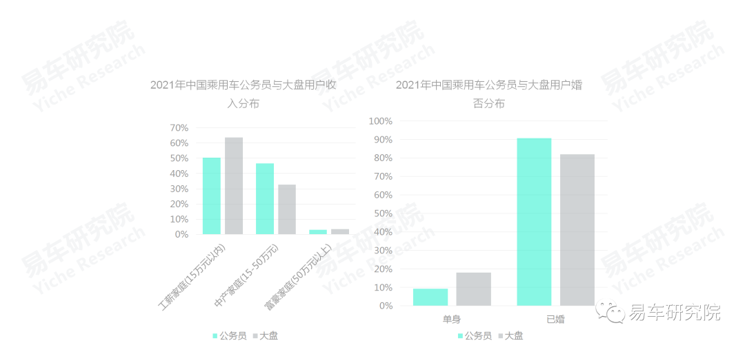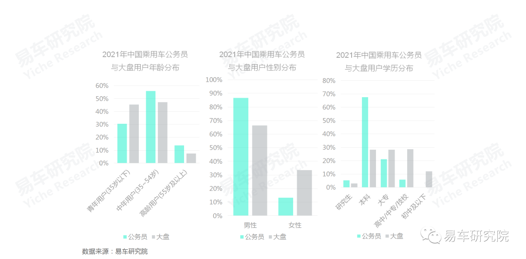 2021 年,易车研究院调研数据显示,公务员车市具有自身鲜明的用户特征: