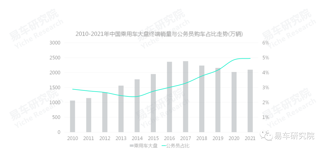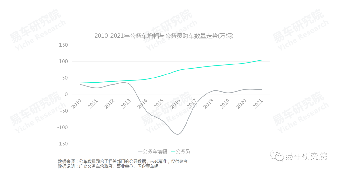 公车改革产生了不少衍生价值,直接刺激了公务员购车,该细分车市 2014 年起加速扩张,2021 年突破 100 万辆;
