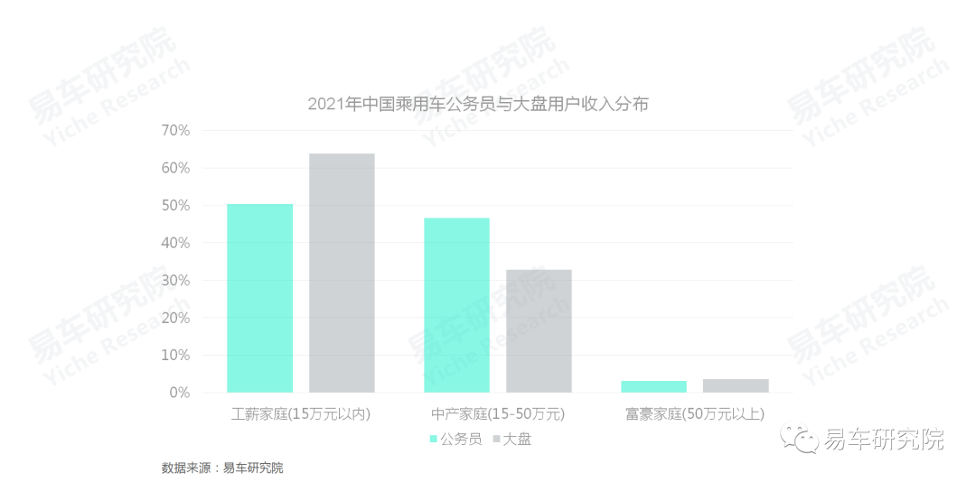 2021 年,易车研究院调研数据显示,公务员用户具有自身鲜明的购车特征: