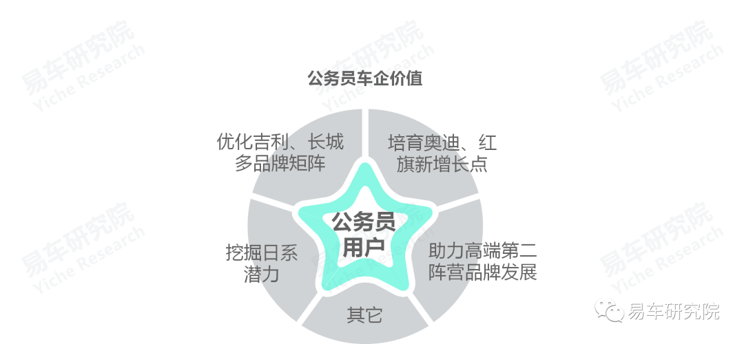 公务员用户对具体车企的战略价值显著,有利于优化、培育、挖掘具体车企的发展模式