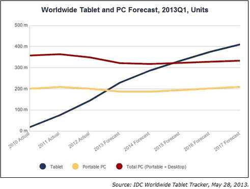 当前消费类电子产品的主要产品细分类型如下:配有3-5英寸屏幕的智能手机;5-8英寸的超级手机或平板手机;8-11.6英寸的平板电脑;11.6-15.6英寸的超极本;以及最大可达17英寸的笔记本电脑。在其5年的产品历史中,平板电脑被认为是升温最快的移动设备,根据预测,到2015年其销量有望赶超个人电脑。因此,PC供应商开始将重心转移至用户界面友好的触摸设计上,比如具有与笔记本电脑或平板电脑相同功能的可翻转笔记本电脑。