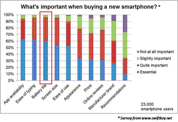 随着移动性在我们生活中占据着越来越重要的位置,功耗成为了消费者在选择便携式电子设备时的一项重要考虑因素。市场调查显示,多数用户认为电池使用寿命是购买新型便携式设备时需要考虑的最重要的特性之一。