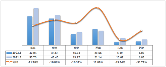 2022 年 3 月六大区域情况分析