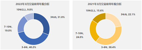 2022 年 3 月二手车交易车辆使用年限分析