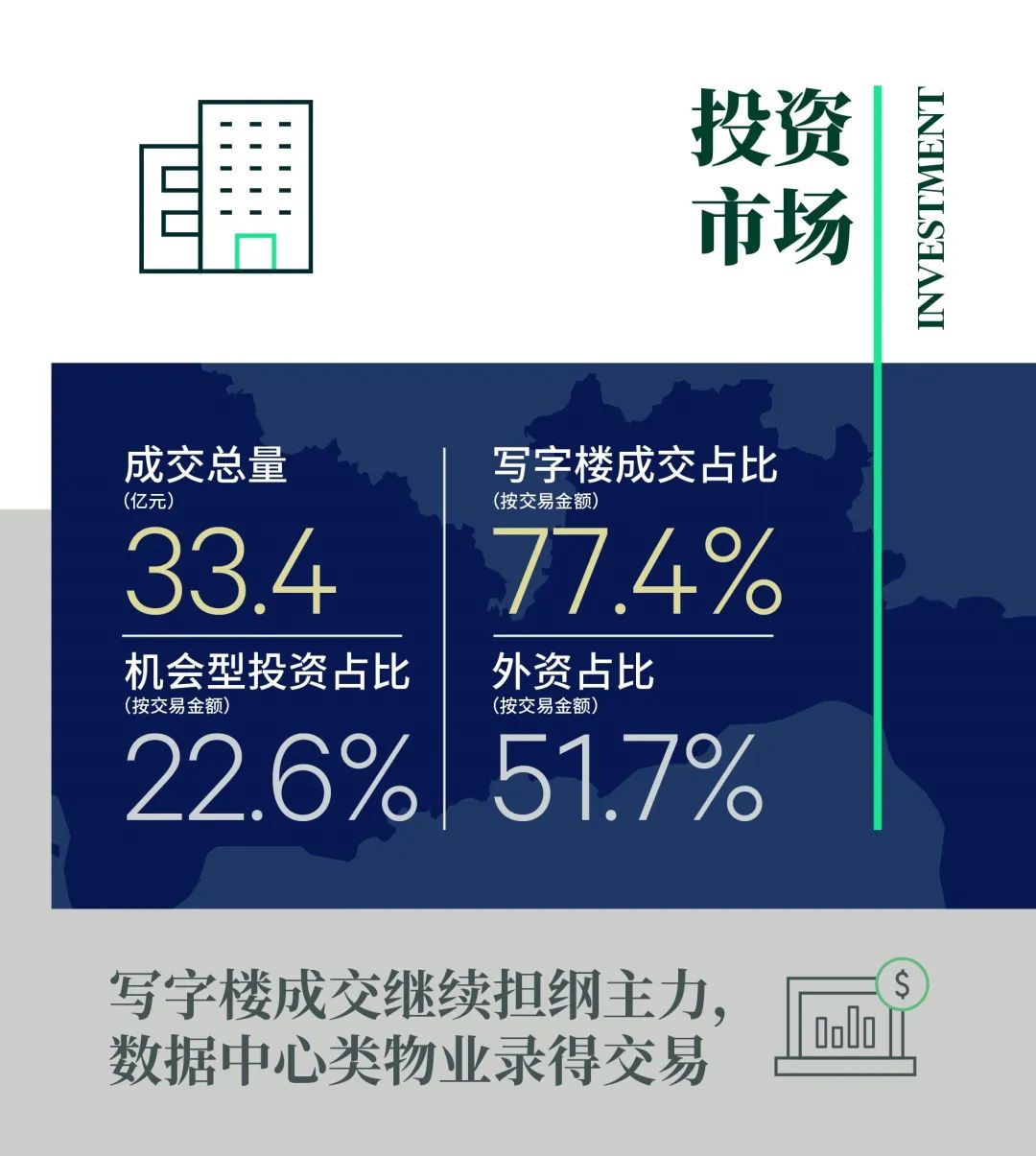 值得注意的是,本季录得一宗数据中心的交易,为上海万国数据以7.5亿元购买了位于深圳观澜的一个数据中心,该数据中心卖方中国新电信集团为一家香港公司,出售的理由是为了回笼资金。