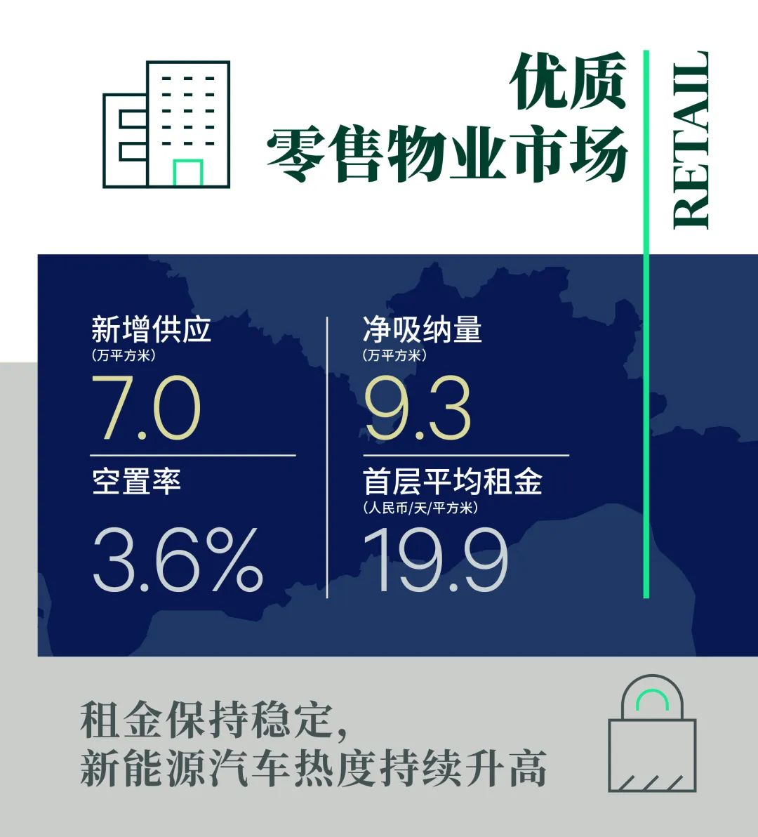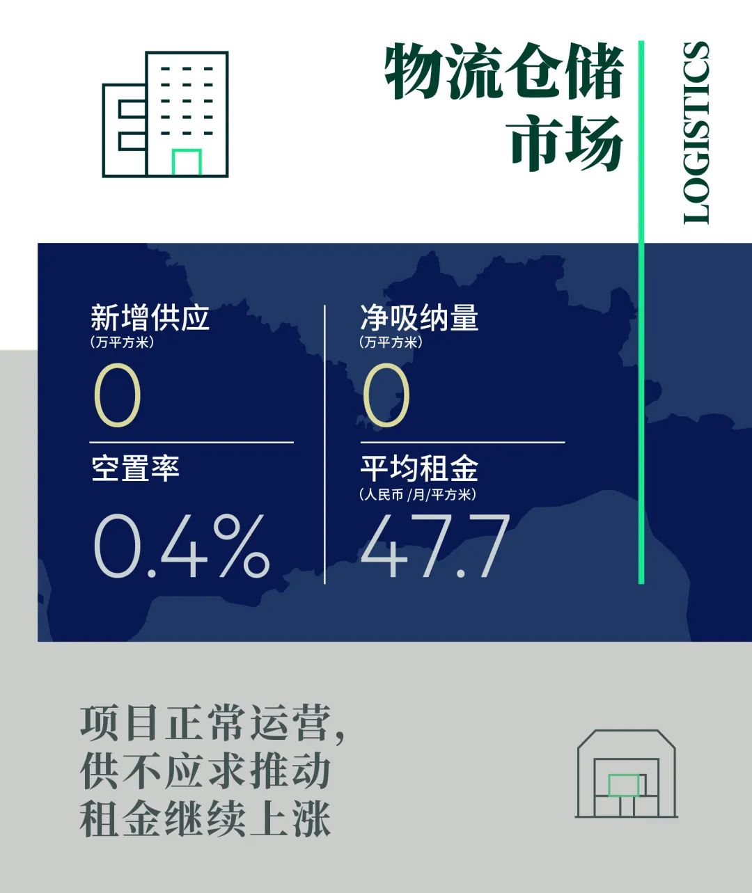 新入市项目良好的租赁状况以及已有项目持续引进租户共同推动整体市场空置率在低位运行,至季末录得3.6%,环比下降了0.3个百分点。