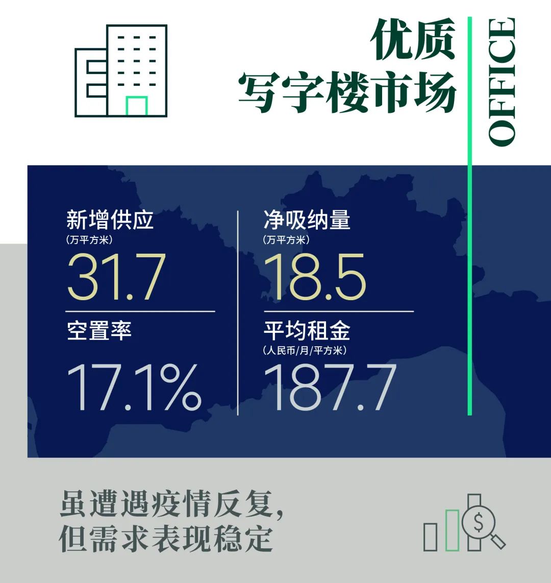 受疫情影响的租赁计划延后叠加房地产租户的租赁调整令单季吸纳量同比及环比有所下降,但总体看来仍然保持一定体量,单季新增吸纳共录得18.5万平方米。
