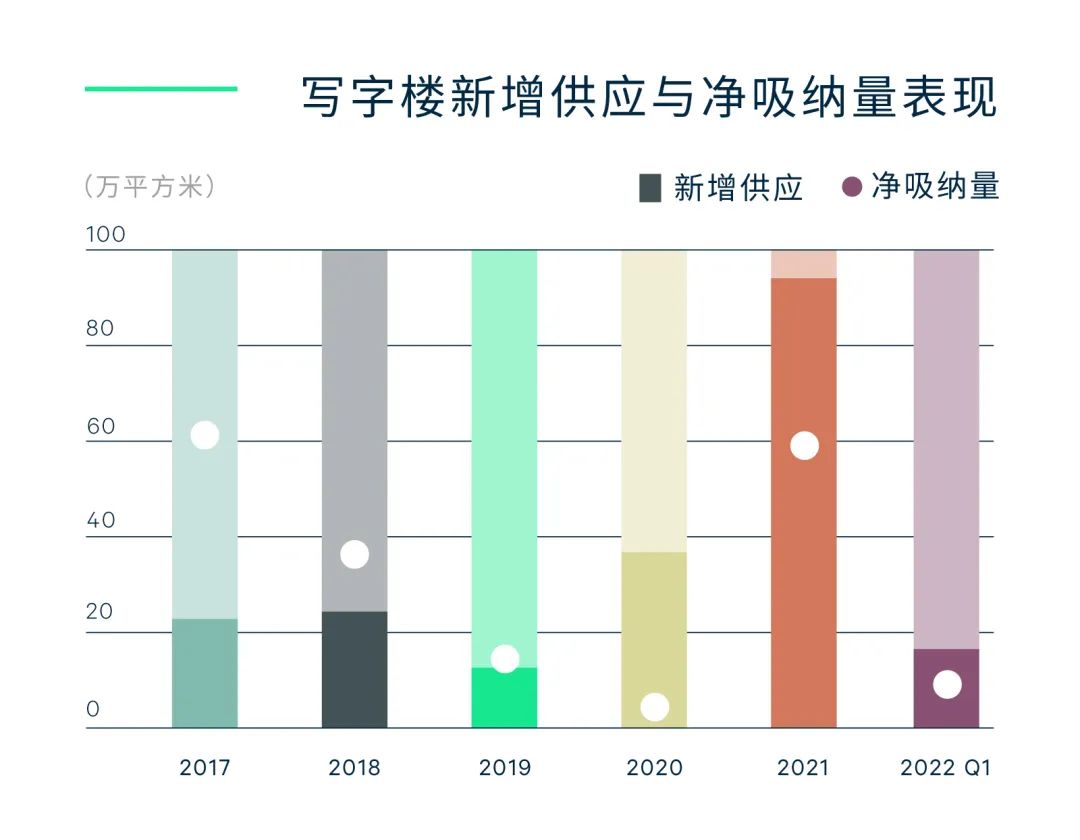 2022年第一季度,广州共有四个项目交付使用,分别位于珠江新城、琶洲和万博商务区,共计16.4万平方米,全市供应量环比减少59%。其中太平洋金融大厦的落成为珠江新城带来6.9万平方米的优质写字楼面积,而热门区域琶洲只录得不足4万平方米、两个小塔楼的供应,供应量环比减少85%,区域内空置率大致平稳,季末报17.7%。整体空置率小幅上扬,环比微升0.6个百分点,至12.5%。