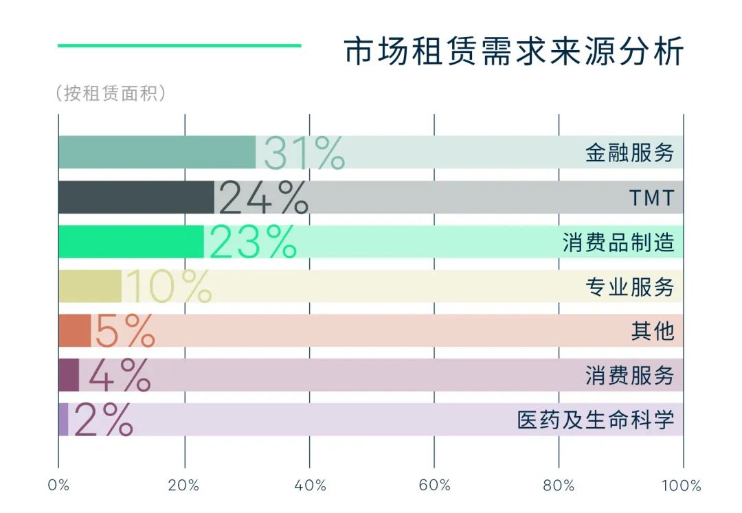 从行业来看,金融业、TMT和消费品制造业占据全市前三大需求。区域表现分化,珠江新城的金融业独占鳌头,占比高达45%,基金、证券和保险代理有扩张;琶洲继续以TMT为需求首位,成交集中在游戏、电商以及“互联网+”政务服务领域。