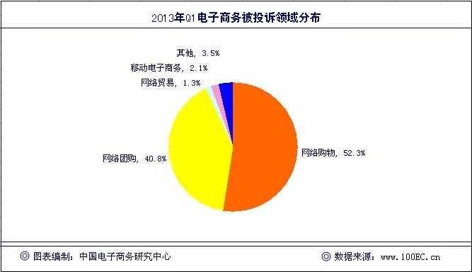 数据表明:网络购物依旧是电子商务最热门的领域,其次网络团购在2013年Q1投诉上升较之前非常迅速。
