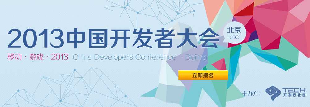 为了更好地推动前沿技术发展,为了进一步让开发者与行业专家探讨技术实践、畅谈技术人生。由9Tech开发者社区主办,面向移动互联网开发者和游戏开发者的免费技术交流盛会——2013中国开发者大会(CDC)•北京由此产生,将于11月2日在北京国际会议中心隆重举办。此次大会势必将成为继中国开发者大会•广州后又一规模盛大的技术交流会议。