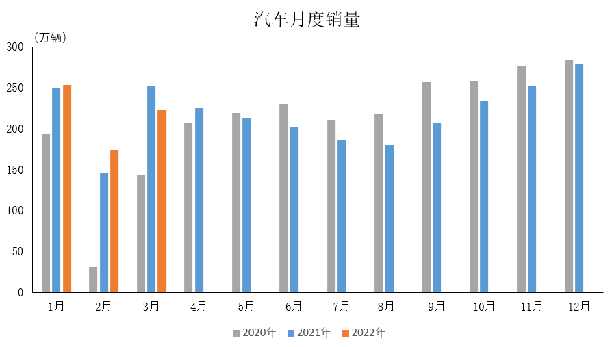 中汽协:2022年3月汽车工业产销情况简述 2022 年 3 月,从汽车消费端看,消费动能明显不足,与同期相比,呈现一定幅度下降。有必要出台购置税减半政策支持行业稳增长。 2022 年 3 月,汽车产销分别完成 224.1 万辆和 223.4 万辆,环比分别增长 23.4% 和 28.4%,同比分别下降 9.1% 和 11.7%。 2022 年 1-3 月,汽车产销分别完成 648.4 万辆和 650.9 万辆,同比分别增长 2.0% 和 0.2%。 2022 年 3 月,乘用车产销分别完成 188.1 万辆和 186.4 万辆,环比分别增长 22.4% 和 25.1%,同比分别下降 0.1% 和 0.6%,与上月相比,均由增转降。 2022 年 1-3 月, 乘用车产销分别完成 549.9 万辆和 554.5 万辆,同比分别增长 11.0% 和 9.0%。 2022 年 3 月,商用车产销分别完成 36.0 万辆和 37.0 万辆,环比分别增长 29.2% 和 47.7%;同比分别下降 38.0% 和 43.5%。 2022 年 1-3 月,商用车产销分别完成 98.5 万辆和 96.5 万辆,同比分别下降 29.7% 和 31.7%。 2022 年 3 月,新能源汽车产销分别完成 46.5 万辆和 48.4 万辆,同比均增长 1.1 倍。 2022 年 1-3 月,新能源汽车产销分别完成 129.3 万辆和 125.7 万辆,同比均增长 1.4 倍。 更多阅读:中汽协: 2024年5月汽车工业产销情况简析中汽协:2022年7月汽车工业产销情况简述中国汽车工业协会:2023年4月汽车工业产销情况简析中汽协:2022年1月汽车工业产销情况简述中国汽车工业协会:2021年10月汽车工业产销情况简述中国汽车工业协会:2023年2月汽车工业产销情况简析中国汽车工业协会:2022年8月汽车工业产销情况简述中汽协:预计2022 年汽车销量达 2675.7 万辆 同比增长 1.7%中汽协: 2021年7月乘用车产销分别完成154.8万辆和155.1万辆中国汽车工业协会:2023年7月汽车工业产销情况简析中国汽车工业协会:2023年6月汽车工业产销情况简析中国汽车工业协会:2021年8月汽车工业产销情况简述中国汽车工业协会: 2021年11月汽车工业产销情况简述中国汽车工业协会:2022年10月汽车工业产销情况简析中国汽车工业协会:2022年9月汽车工业产销情况简述