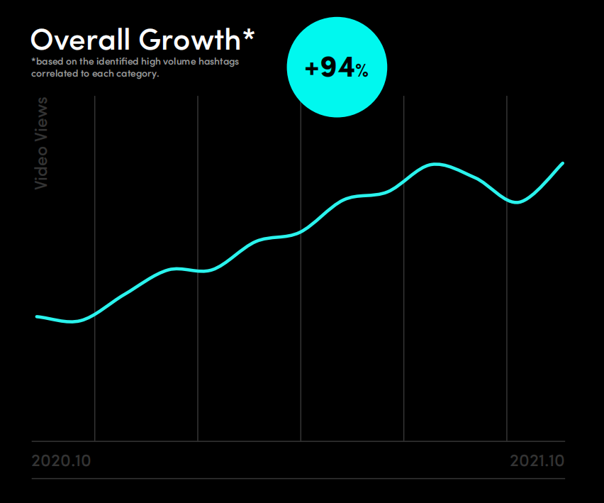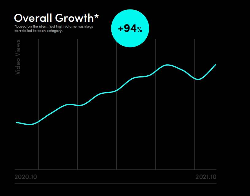 TikTok For Business根据过去一年的一手数据,为欧洲市场表现绘制了较为全面的分析,列出平台显著增长的视频类别与官方认为值得特别关注的类别。