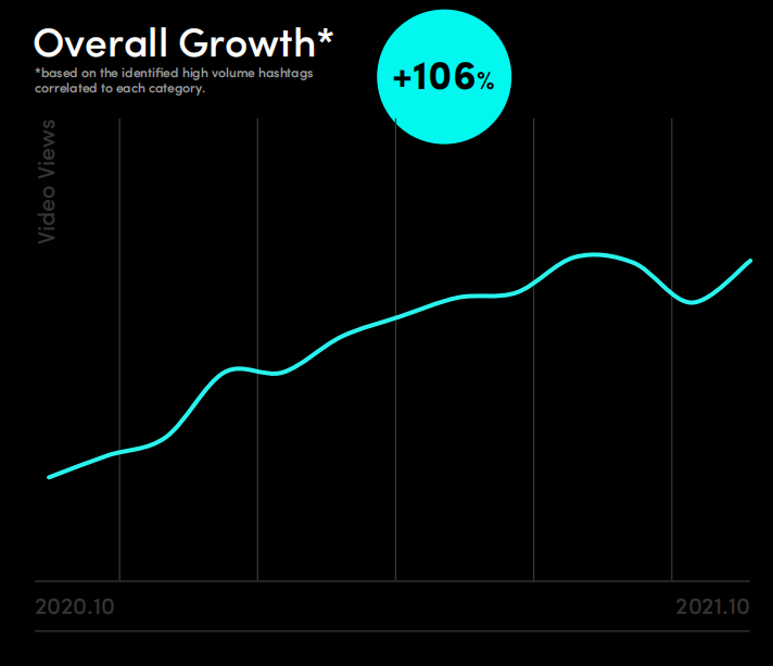 (过去一年TikTok欧洲站美妆个护类视频整体增长情况)