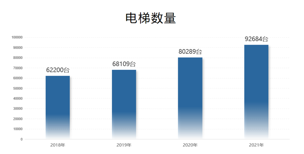 电梯数量方面,2018 年全市电梯有 62200 台,2021 年底全市电梯数量达到 92684 台,数量增长了 49%。