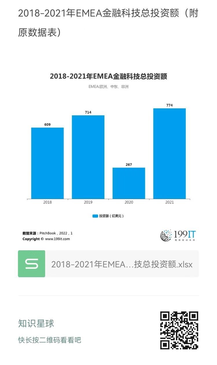 2018-2021年EMEA金融科技总投资额(附原数据表) ​​​​