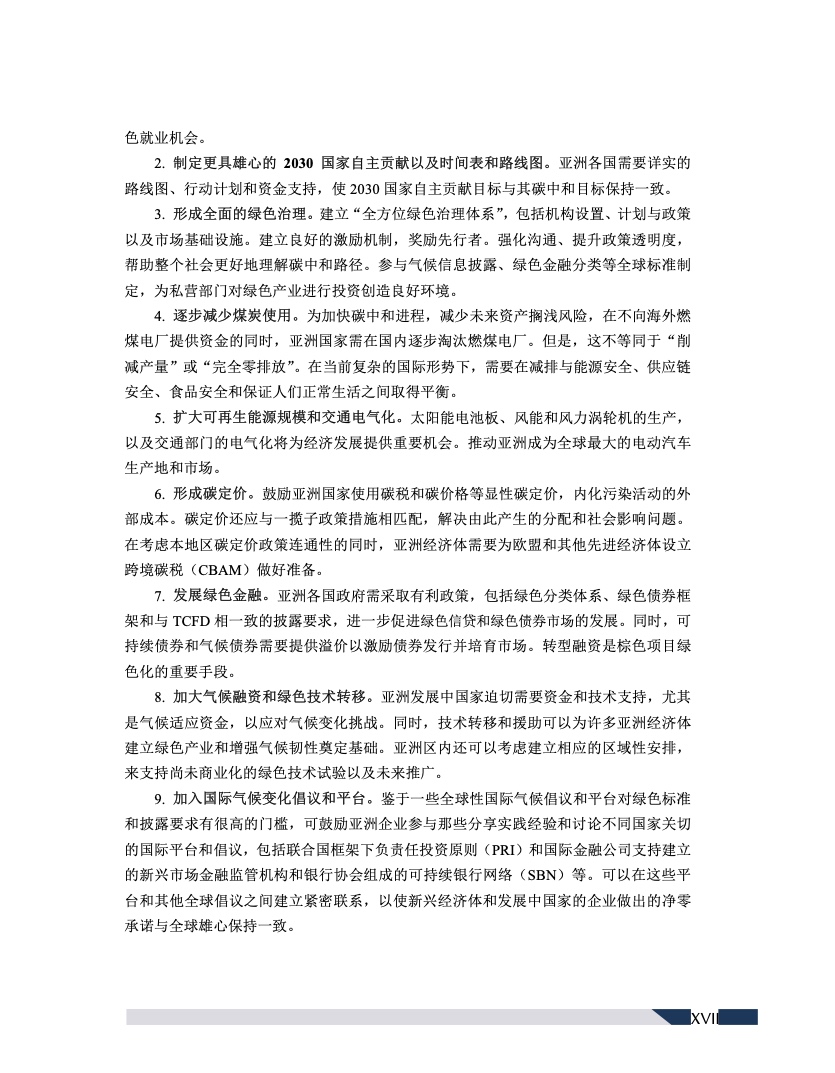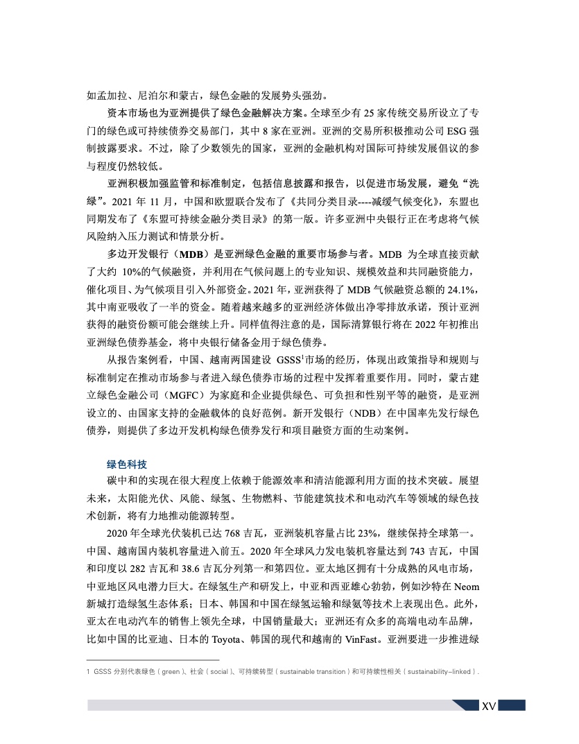 ——发展绿色金融。亚洲各国和地区需采取有力政策,进一步促进绿色信贷和绿色债券市场的发展。