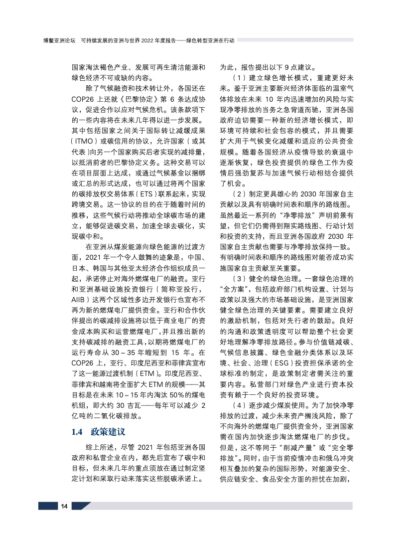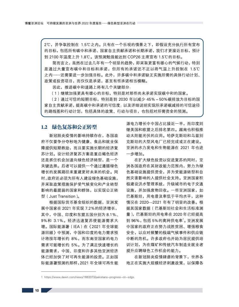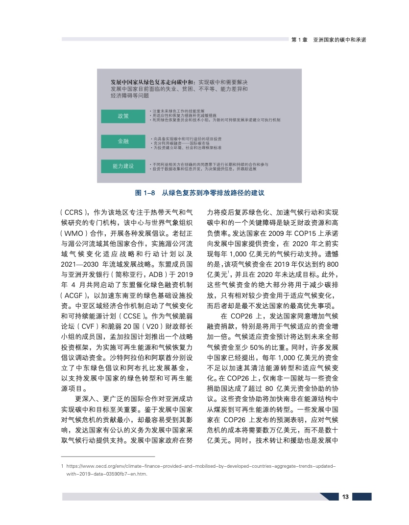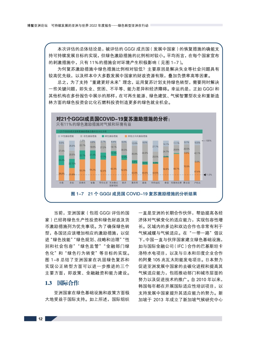 ——建立绿色增长模式,重建更好未来。亚洲各国和地区政府迫切需要采取新的经济增长模式,即环境可持续和社会包容的模式,并且需要扩大减缓气候变化的公共资金规模,扩大绿色投资,将疫后经济复苏与加速气候行动相结合。
