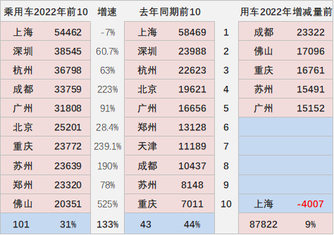 2022 年 1-3 月相对于 2021 年同期全面大幅增长,成都、佛山、重庆、苏州、广州等增长都相对较为迅猛,尤其成都的增量达到 2.3 万台的规模,形成增量的核心推动力量。