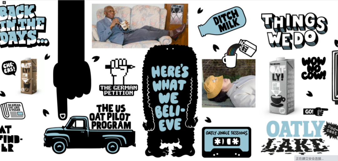 要善于利用一切触点,这个触点不仅仅是产品本身,更是在每一个传递内容的地方选择符合品牌符号气质的方式讲故事。产品包装可以不仅仅是属于产品的,OATLY 将包装外在视觉和产品本身并列,构造了令人印象深刻的鲜明符号。