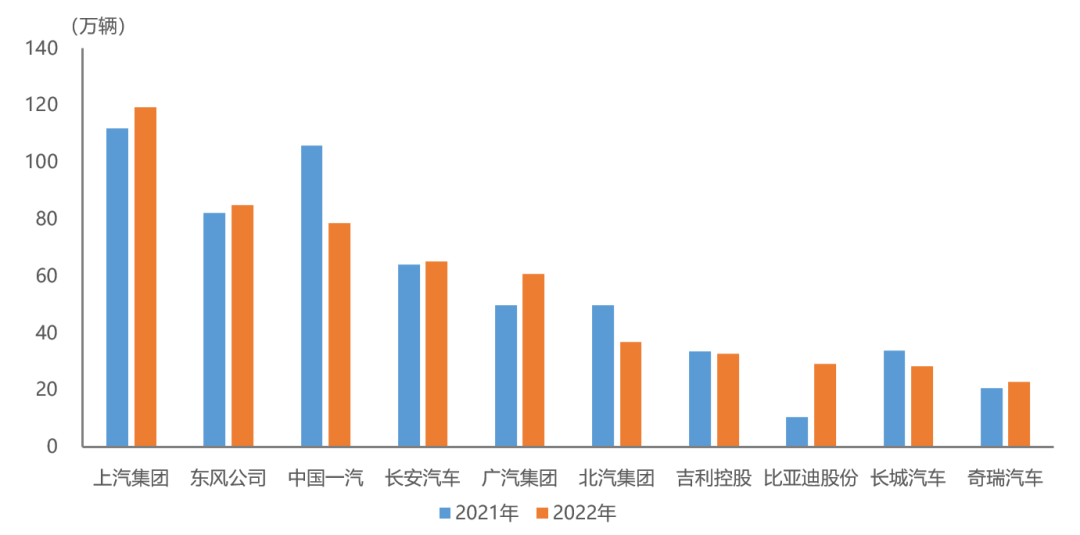 中国汽车工业协会:2022年第一季度汽车销量排名前十位的企业(集团)共销售558.6万辆 据中国汽车工业协会统计分析,2022年一季度,汽车销量排名前十位的企业(集团)共销售558.6万辆,占汽车销售总量的85.8%。 在汽车销量排名前十位企业中,与上年同期相比,比亚迪销量增速依然最为明显,广汽和奇瑞也呈较快增长,上汽、东风和长安增速略低,其他企业有所下降。 更多阅读:中国汽车工业协会:2022年1-8月汽车销量排名前十位的企业(集团)共销售1453.9万辆中国汽车工业协会:2023年1-2月我国汽车商品出口金额前十国情况简析中国汽车工业协会:2022年3月前十位轿车品牌销量排名中国汽车工业协会:2021年5月汽车工业运行情况简述中汽协会:2021年1-5月汽车销量排名前十位的企业集团销量合计为944.5万辆中汽协:2021年1-7月汽车销量排名前十企业简析中国汽车工业协会:2024年1-6月前十位MPV生产企业销售情况简析中国汽车工业协会:2024年5月海关进出口情况简析中国汽车工业协会:2023年1-8月前十位轿车生产企业销售情况简析中国汽车工业协会:2023年1-7月七大类汽车商品进出口金额情况中国汽车工业协会:2023年1-7月汽车制造业营业收入保持增长中国汽车工业协会:2023年1-7月前十位汽车生产企业销售情况简析中国汽车工业协会:2023年6月中国汽车整车出口情况简析中国汽车工业协会:2023年5月我国汽车整车出口情况简析中国汽车工业协会:2023年1-5月前十位汽车生产企业销售情况简析
